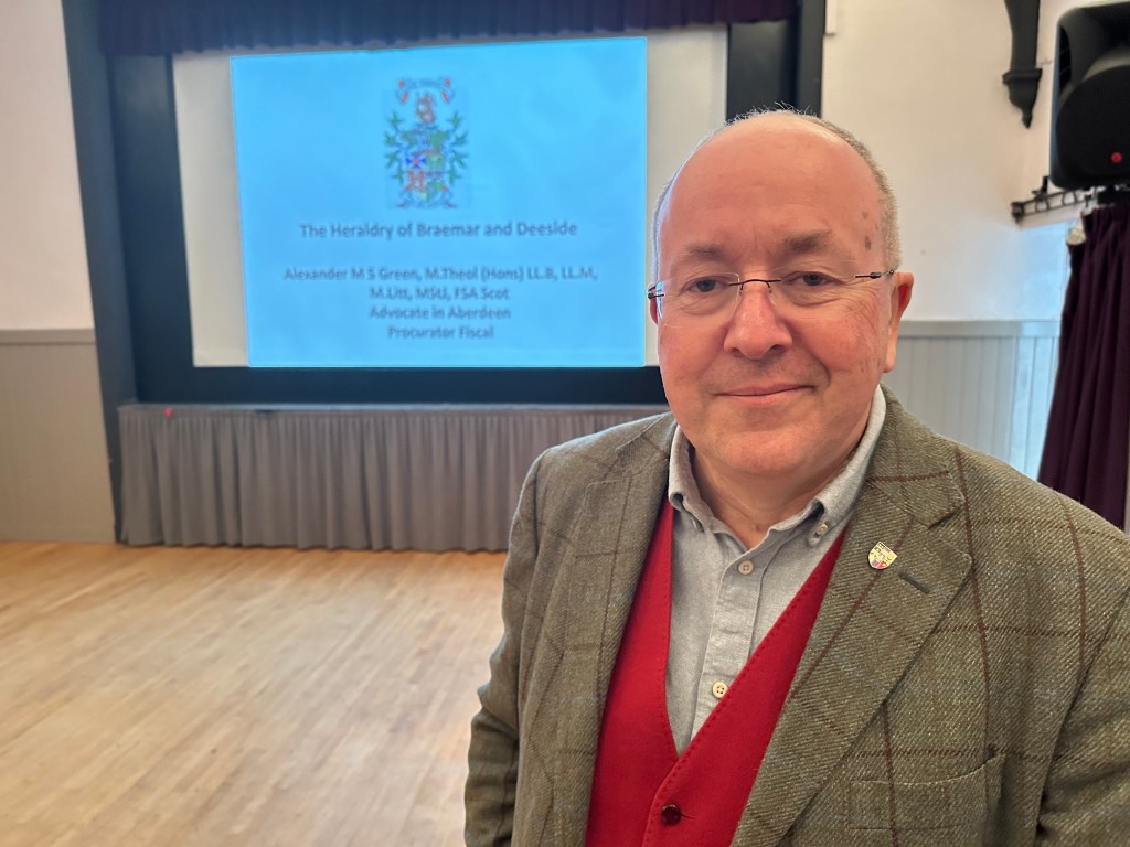 February 16: Alexander M.S. Green, M.Theol (Hons) LL.B, LL.M, M.Litt, MStJ, FSA Scot, Advocate in Aberdeen, Procurator Fiscal, spoke about the Heraldry of Braemar and Deeside.